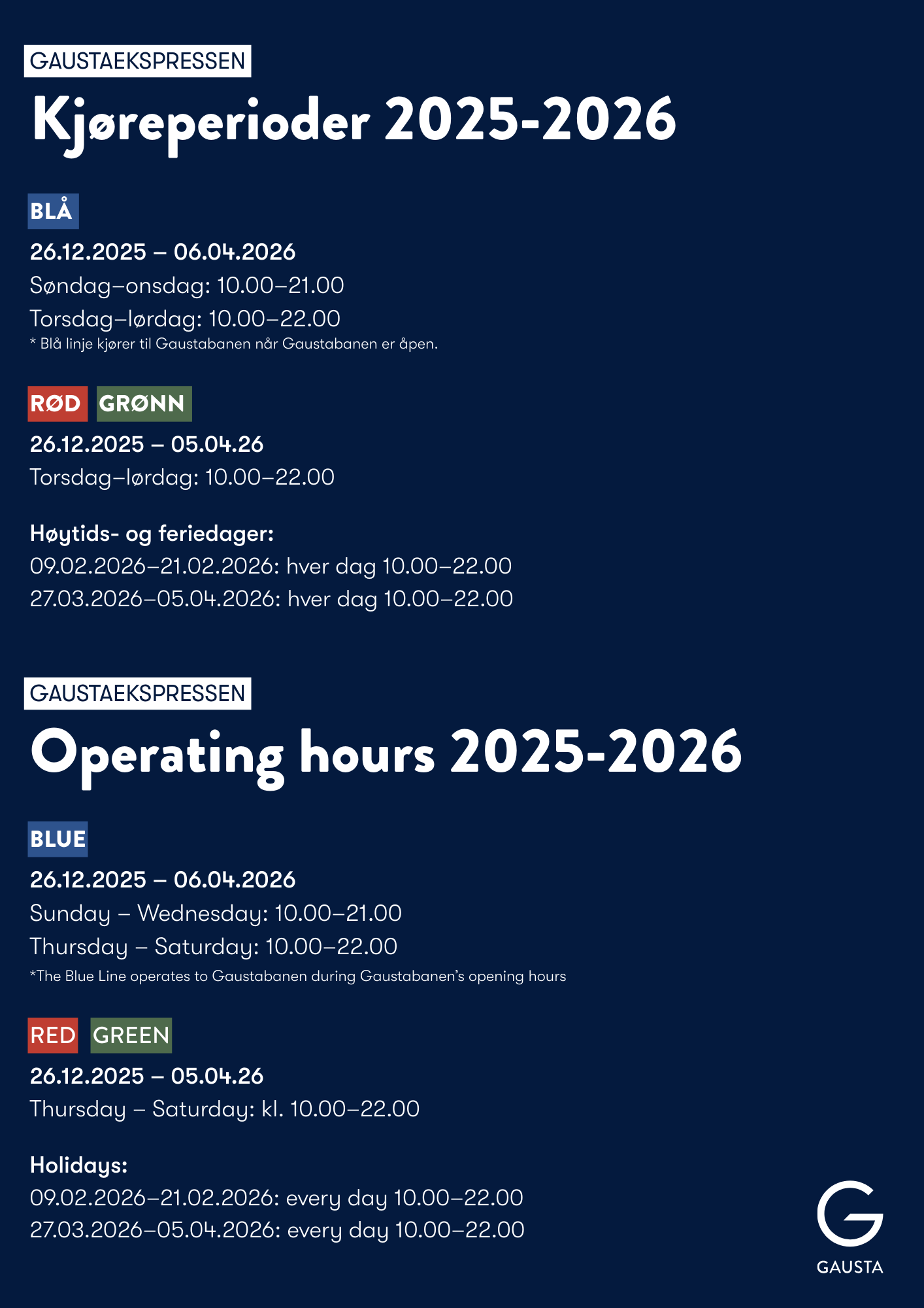 If you’d like to travel to Gausta by bus, there are express coaches to Rjukan every day from Oslo, with a transfer in Notodden. It’s also possible to take the train to Notodden and change to a bus from there. For the final stretch up the mountain, you can take the Fjellbussen (Mountain Bus) during selected periods, or take a taxi.
